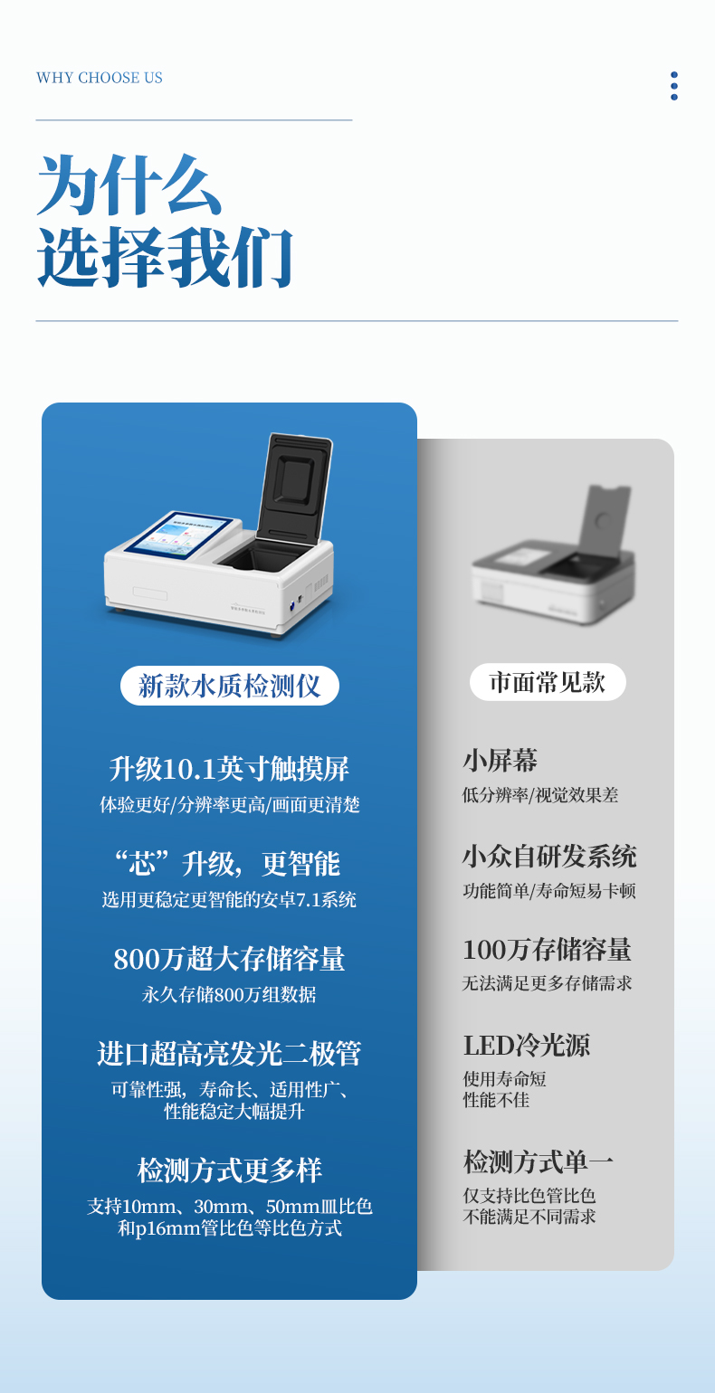 3、采用精密比色池設(shè)計(jì),使用光源一致,可以解決由于光源誤差帶來的檢測結(jié)果誤差問題,檢測結(jié)果更加精準(zhǔn)。