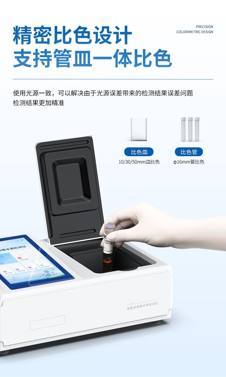 5、支持10mm、30mm、50mm皿比色和φ16mm管比色等比色方式,多元選擇,確保測量的準確性;