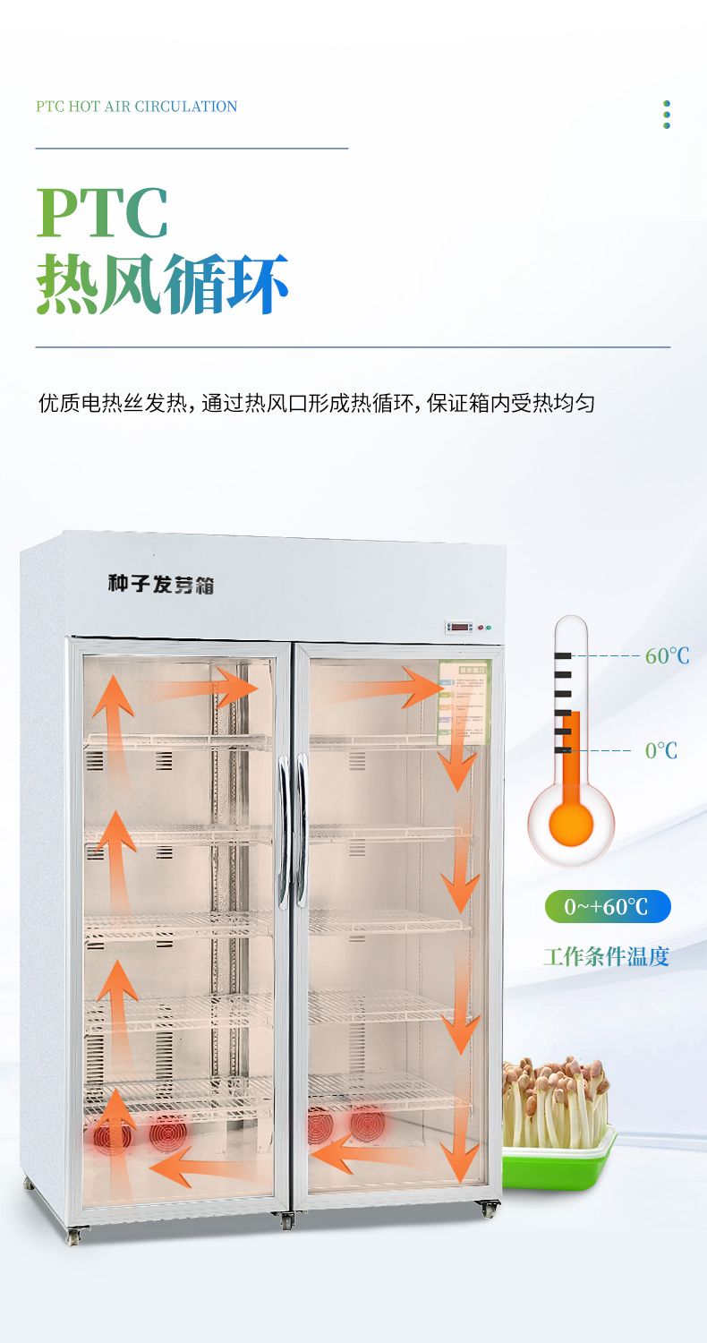 2、此箱可在不同地區(qū)不同季節(jié)使用不同的種子恒溫快速發(fā)芽,由于恒溫的作用,使種子的蛋白酶等化學(xué)物質(zhì)迅速分解反應(yīng),避免了溫差出芽造成的能量丟失,使種子出芽后抗病力強(qiáng),提高幼苗免疫能力,縮短了種子的出芽的時(shí)間。經(jīng)該器械出的幼芽,芽苗質(zhì)量好,成活率高。