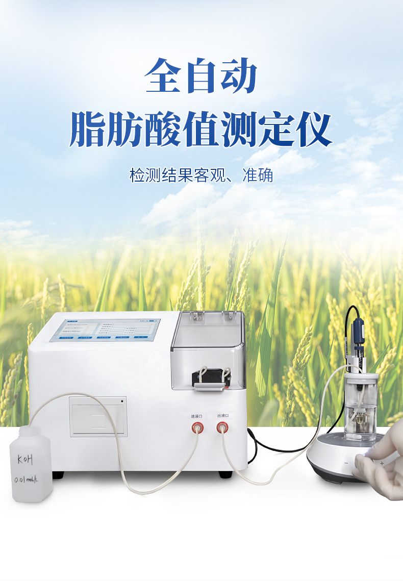 全自動(dòng)脂肪酸值測(cè)定儀是針對(duì)脂肪酸值作為判斷儲(chǔ)糧品質(zhì)劣變的重要儀器設(shè)備,是一種以電極電位突躍作為指示終點(diǎn)為控制依據(jù)的自動(dòng)滴定裝置。主要用于測(cè)定稻谷、糙米、大米等糧食作物的脂肪酸值,是一種專(zhuān)用檢測(cè)設(shè)備。本儀器實(shí)現(xiàn)了滴定終點(diǎn)判定、計(jì)量、數(shù)據(jù)處理、測(cè)定結(jié)果顯示及打印功能自動(dòng)化,提高了檢測(cè)結(jié)果的客觀性及準(zhǔn)確性,具有操作簡(jiǎn)單、使用方便的特點(diǎn)。