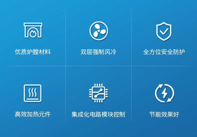 1、爐膛采用優(yōu)質(zhì)氧化鋁纖維材料,保溫性能好,耐用,拉伸強(qiáng)度高,無雜球,純度高,節(jié)能效果明顯;
