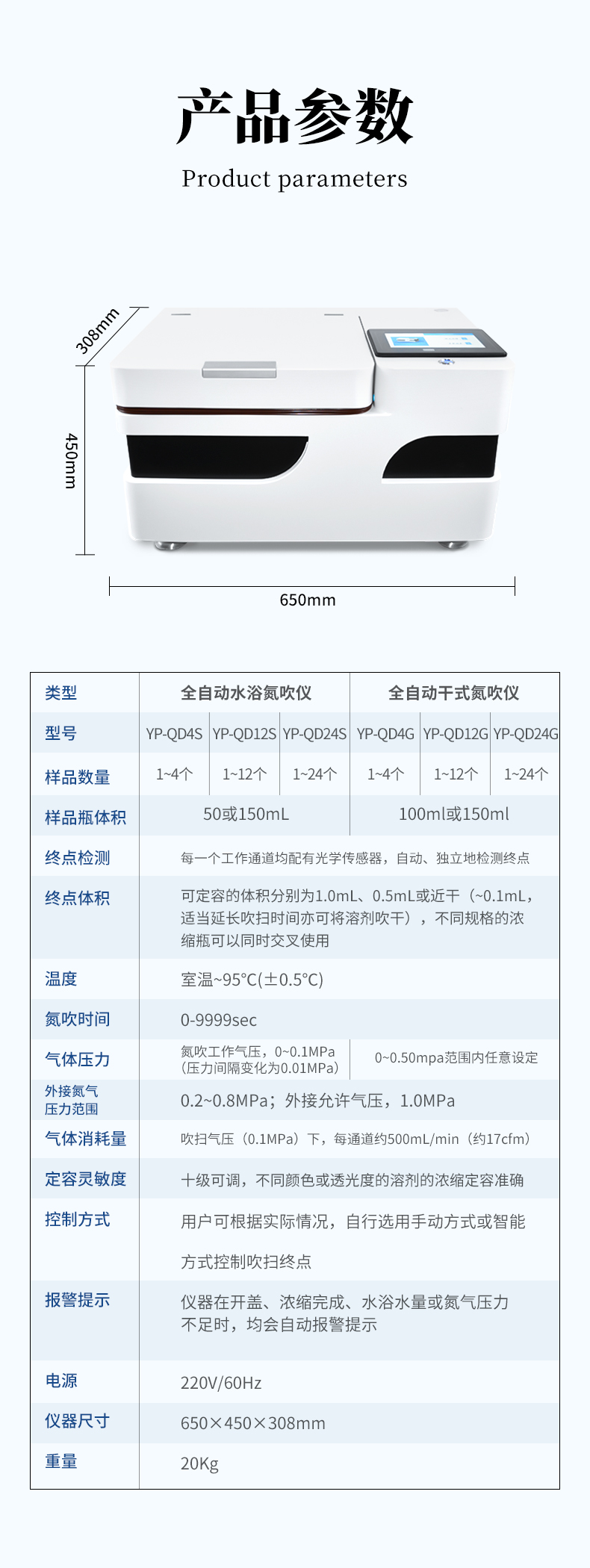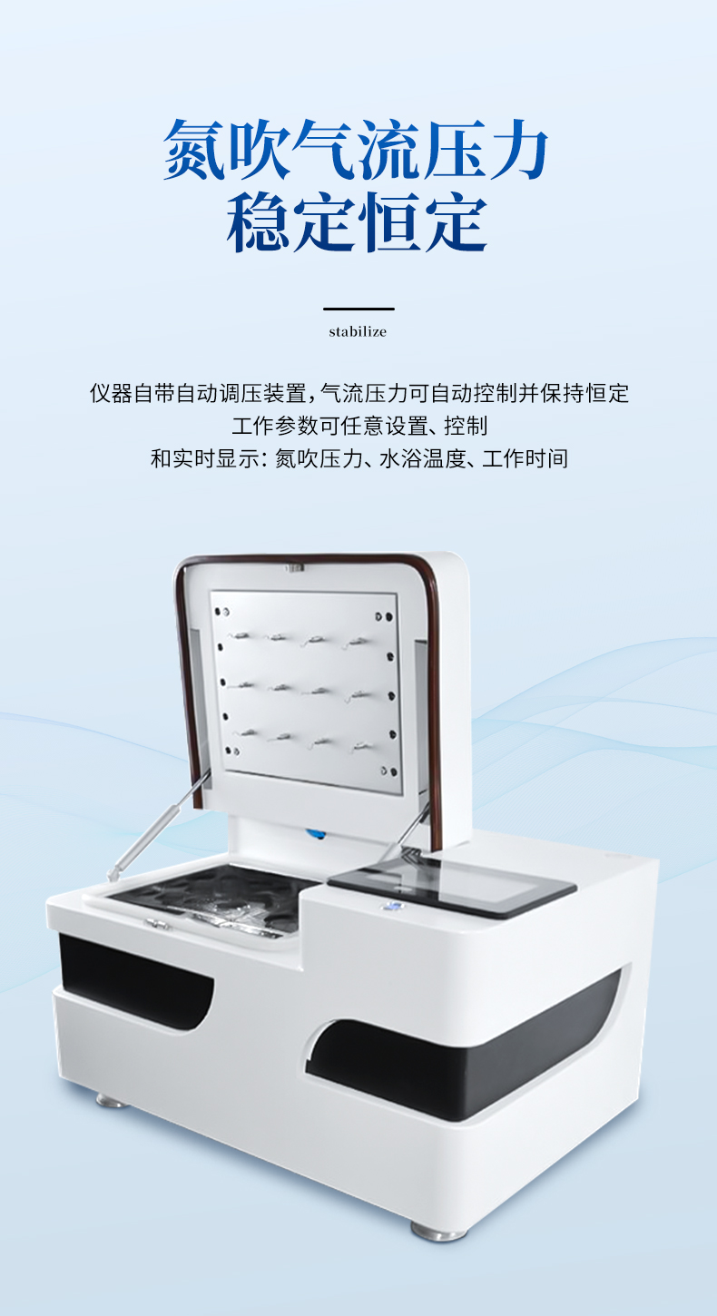 全自動(dòng)多功能干式氮吹儀YP-QD24G是我司結(jié)合實(shí)驗(yàn)室使用需求,從使用者方便安全快捷穩(wěn)定等多角度共同開(kāi)發(fā)的新型濃縮定容產(chǎn)品,產(chǎn)品擺脫了常規(guī)市場(chǎng)上利用水浴加熱揮發(fā)而導(dǎo)致樣品進(jìn)行污染的弊端,確定樣品的安全性與準(zhǔn)確性,具有無(wú)人值守、準(zhǔn)確定容、大批量濃縮的特點(diǎn),可多組數(shù)據(jù)儲(chǔ)存功能,實(shí)現(xiàn)了全自動(dòng)化的定量及批量濃縮,濃縮全程,讓繁瑣的濃縮過(guò)程變得靈活、省心、高效和安全。