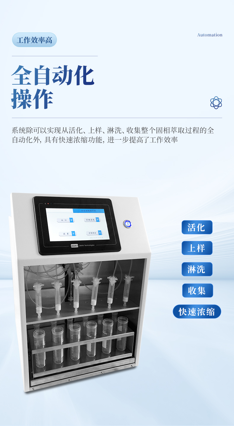 1. 系統(tǒng)除可以實(shí)現(xiàn)從活化、上樣、淋洗、收集整個(gè)固相萃取過程的全自動(dòng)化外,具有快速濃縮功能,進(jìn)一步提高了工作效率。