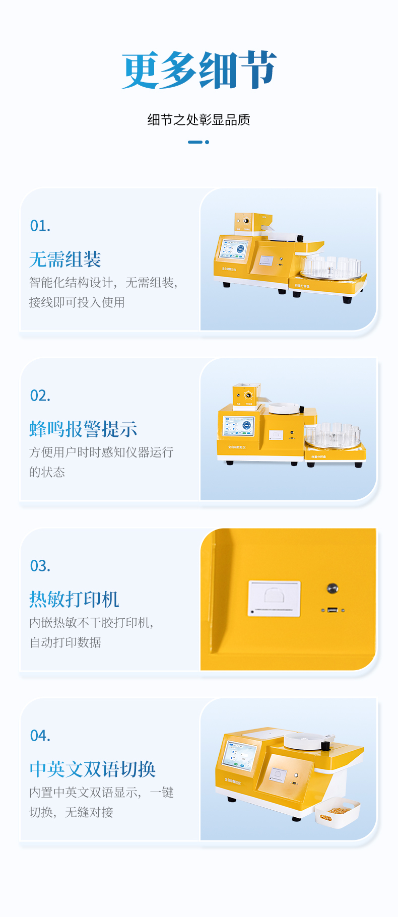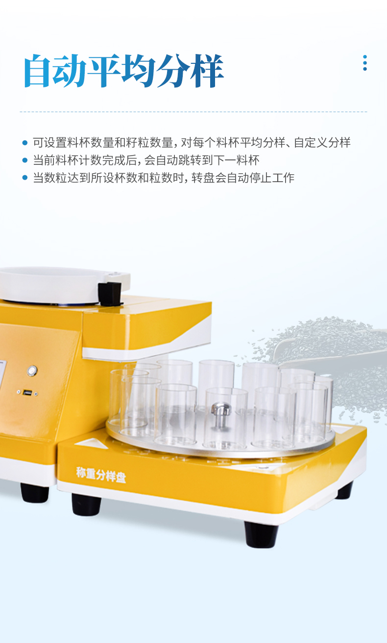 3、智能化程序設定:分樣型自動數(shù)粒儀以數(shù)粒為核心,功能覆蓋全面,程序設定后,從料倉到轉盤全自動大批量分樣數(shù)粒,減少人工時間。