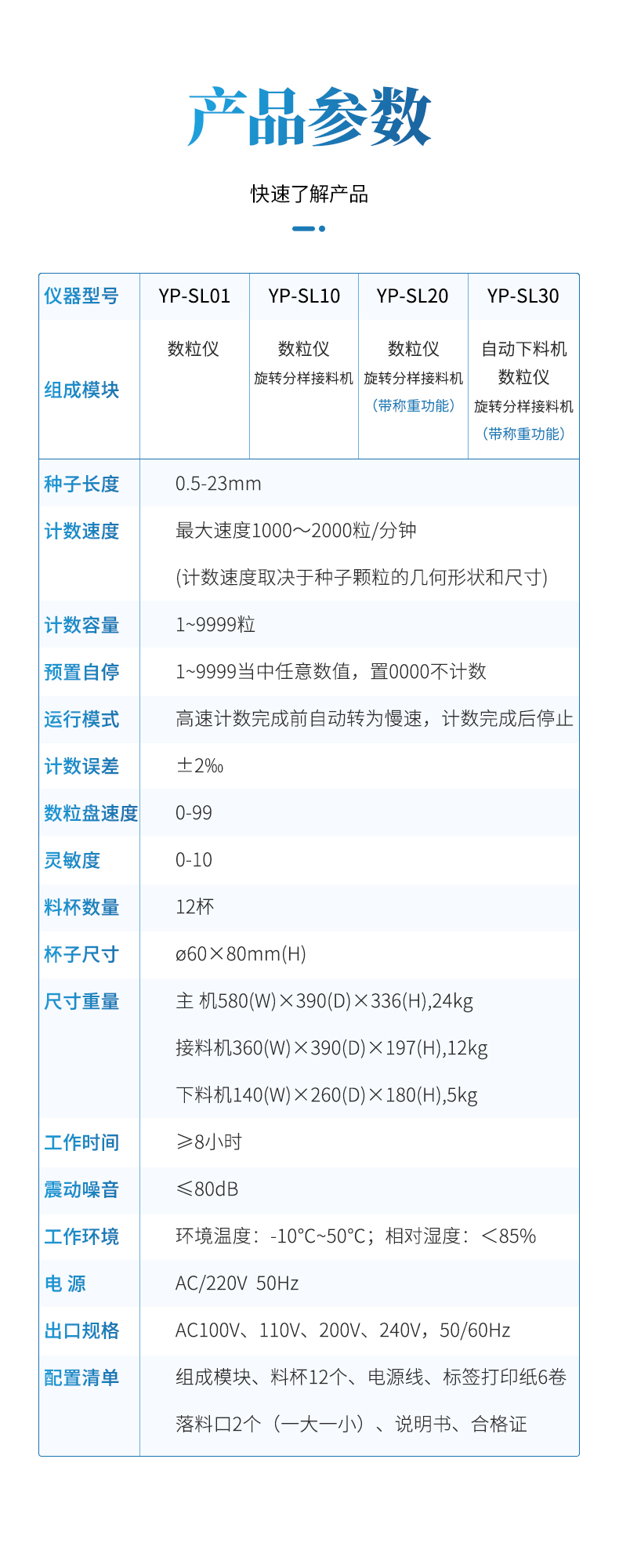 配置清單:數(shù)粒儀、旋轉分樣接料機、料杯12個、電源線、落料口2個(一大一?。撕灤蛴〖?卷、說明書、合格證