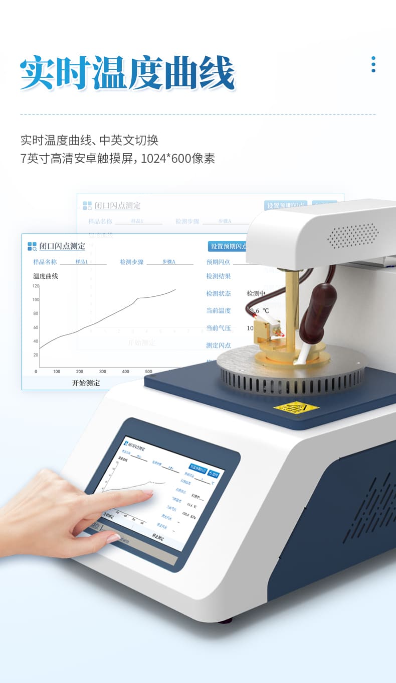 儀器按照GB/T 261-2021方法規(guī)定的升溫曲線加熱,溫度接近預(yù)期閃點(diǎn)值時(shí)自動(dòng)點(diǎn)火,當(dāng)出現(xiàn)閃點(diǎn)時(shí)儀器自動(dòng)鎖定結(jié)果,并顯示和打印,同時(shí)啟動(dòng)風(fēng)機(jī)自動(dòng)對(duì)加熱器進(jìn)行冷卻。