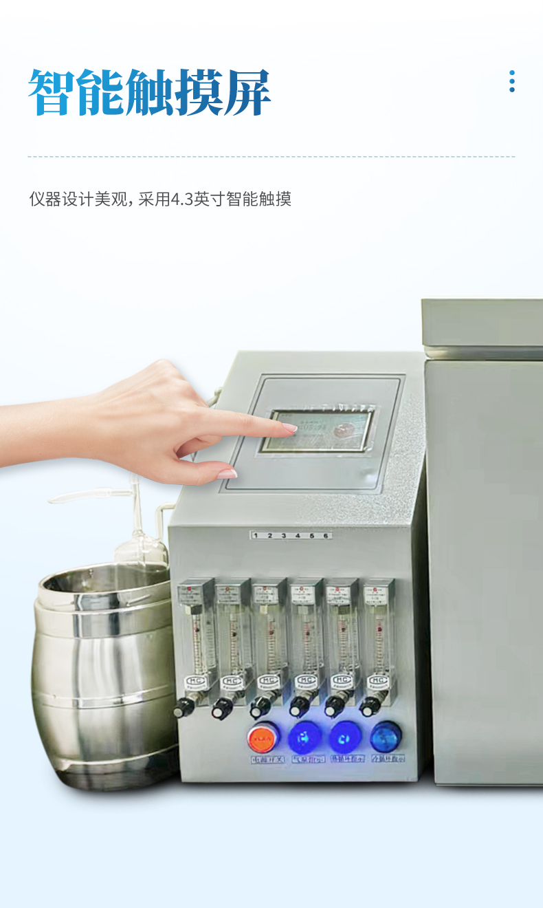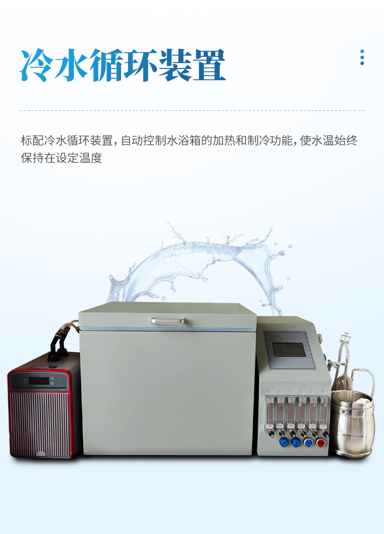四氯化碳吸附率測定儀適用于活性炭四氯化碳(活性)吸附率的測定;符合GBT7702.13、GBT12496.5國標要求:1儀器設計美觀,采用4.3寸智能觸摸屏,標配冷水循環(huán)裝置,自動控制水浴箱的加熱和制冷功能,使水溫始終保持在設定溫度,全新智能計時功能,可任意設置工作時間,避免了人工計時的不確定性。采用分體設計,由CPU集成電路控制器、恒溫水箱、氣體凈化和冷水循環(huán)機四部分組成智能檢測設備,設計6路通道(8通道),同時一次性檢測分析6個樣品,提高操作分析試驗工作效率。采用高精度鉑探頭,非固定方式的探頭設計,可隨時測定水浴箱內(nèi)每個地點的溫度。采用進口保溫材質(zhì),恒溫效果極佳,從而更加節(jié)能。