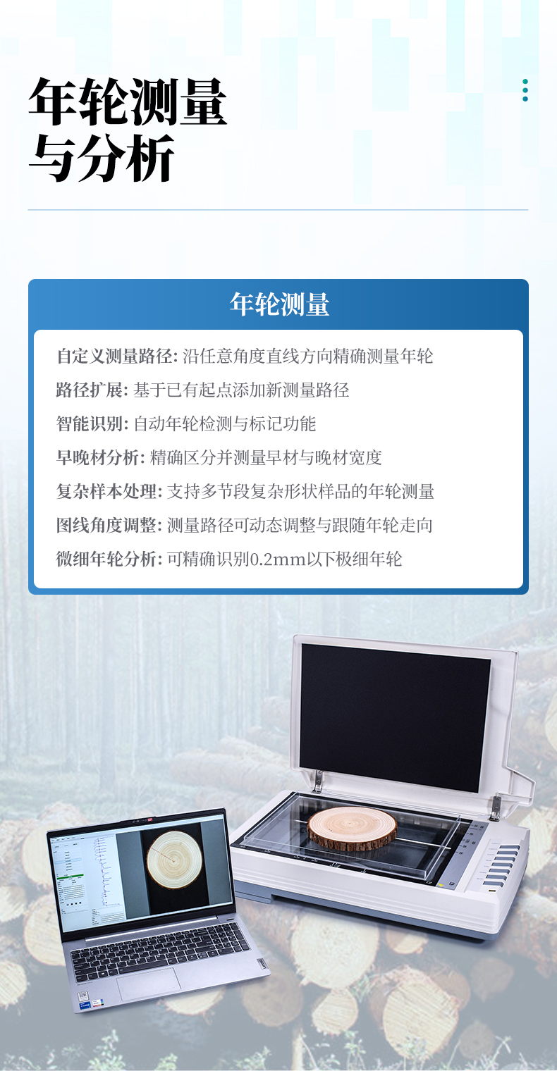 - 圖線角度調(diào)整:測量路徑可動態(tài)調(diào)整與跟隨年輪走向