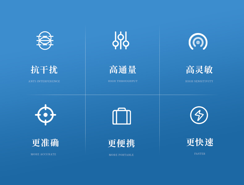 抗干擾 — 使用新型量子點(diǎn)熒光探針作為示蹤物,信號(hào)不受外界的背景干擾。