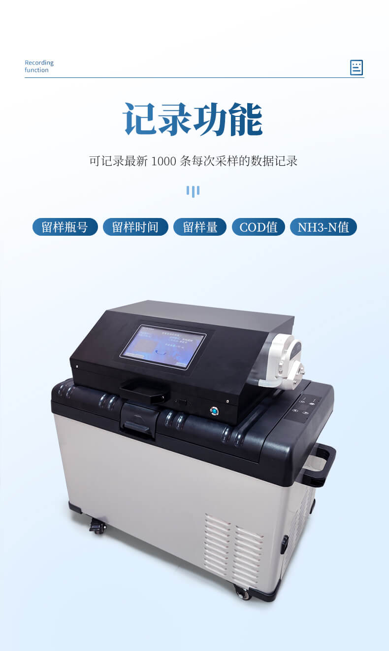 3、記錄功能:可記錄每次采樣的留樣瓶號、留樣時(shí)間、留樣量、COD 值和 NH3-N 值,可記錄最新 1000 條數(shù)據(jù)記錄;