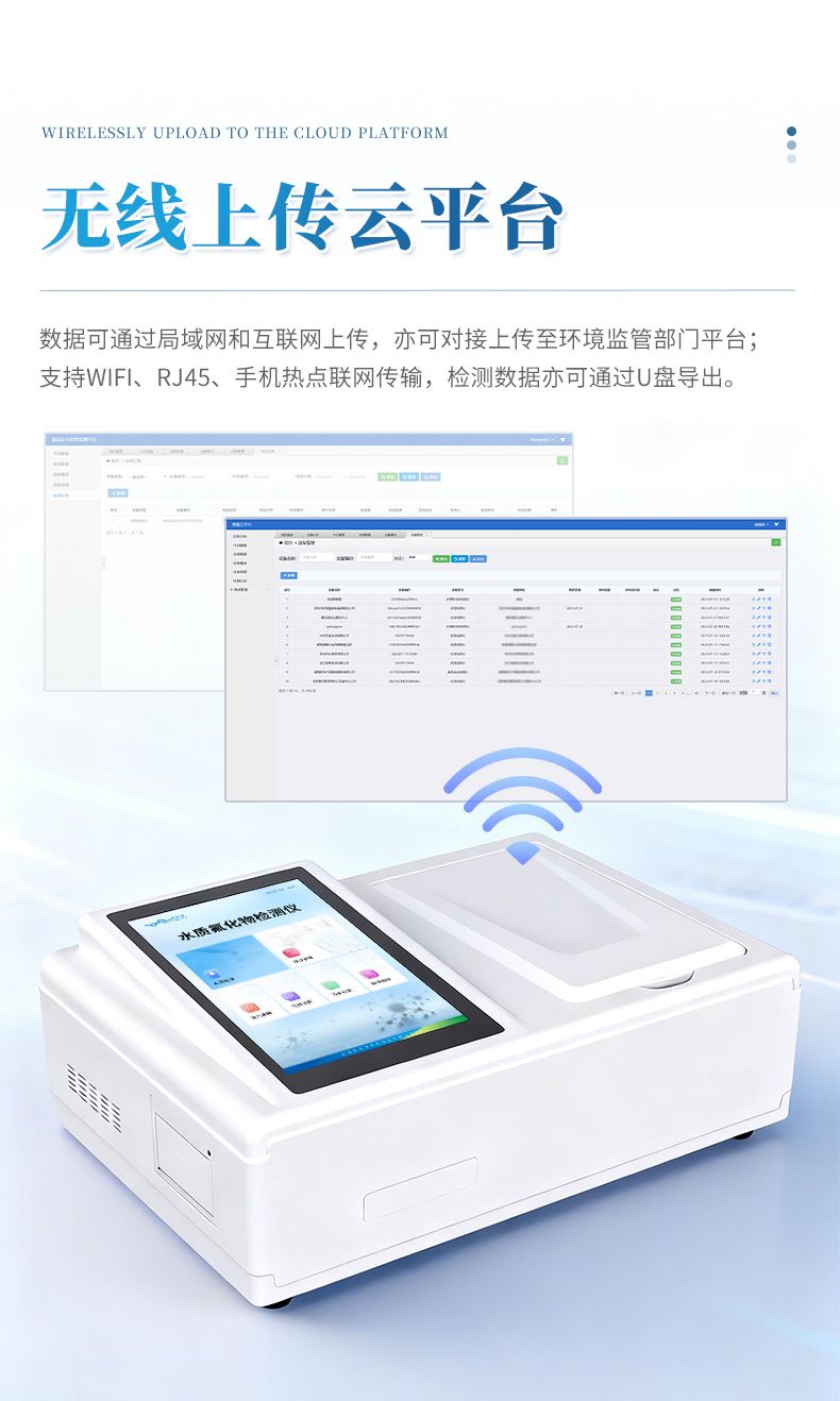 5.具有無線通訊功能,支持Wi-Fi、RJ45、手機(jī)熱點(diǎn)聯(lián)網(wǎng)傳輸,檢測(cè)數(shù)據(jù)亦可通過U盤導(dǎo)出;