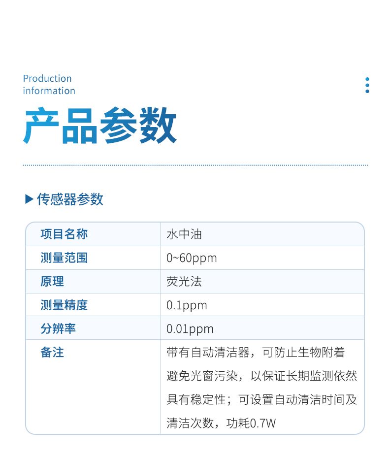 | 15 | cod | 0~500mg/ L | UV254 吸收法 | ±5% | 0.1mg/L | 帶有自動(dòng)清潔器,可防止生物附著,避免光窗污染,以保證長期監(jiān)測依然具有穩(wěn)定性;可設(shè)置自動(dòng)清潔時(shí)間及清潔次數(shù),功耗0.7W | |