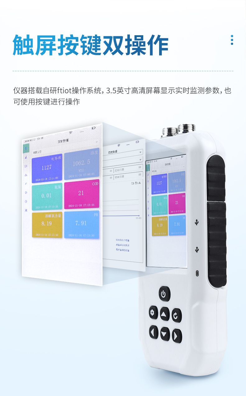 便攜式多參數(shù)水質(zhì)測定儀是一款電極法水質(zhì)分析儀器,采用全數(shù)字電極檢測,可檢測水質(zhì)的水中油參數(shù)。儀器搭載自研ftiot操作系統(tǒng),操作簡單、性能穩(wěn)定、測量準(zhǔn)確、檢測范圍廣,內(nèi)置高容量充電鋰電池,便于用戶在野外、實(shí)驗(yàn)室隨時(shí)進(jìn)行水質(zhì)檢測工作。