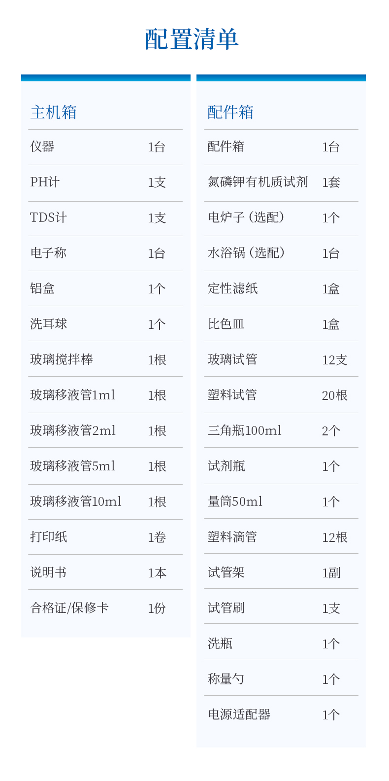 八、科研級(jí)土壤肥料養(yǎng)分檢測(cè)儀配置清單:
