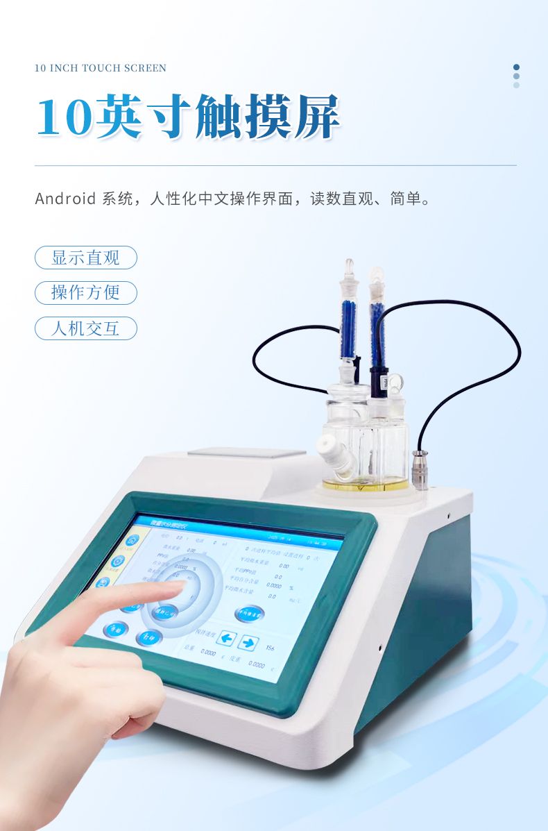 該儀器具有測(cè)定精度高、分析速度快、使用范圍廣、穩(wěn)定可靠、操作簡(jiǎn)單等優(yōu)點(diǎn)。廣泛用于電力、石油、化工、農(nóng)藥、醫(yī)藥等行業(yè)。樣品測(cè)定過(guò)程由儀器自動(dòng)控制,攪拌、測(cè)定60秒左右自動(dòng)完成,直接顯示測(cè)定結(jié)果;全密封滴定池瓶,避免試劑與人接觸,也避免環(huán)境濕度的影響;