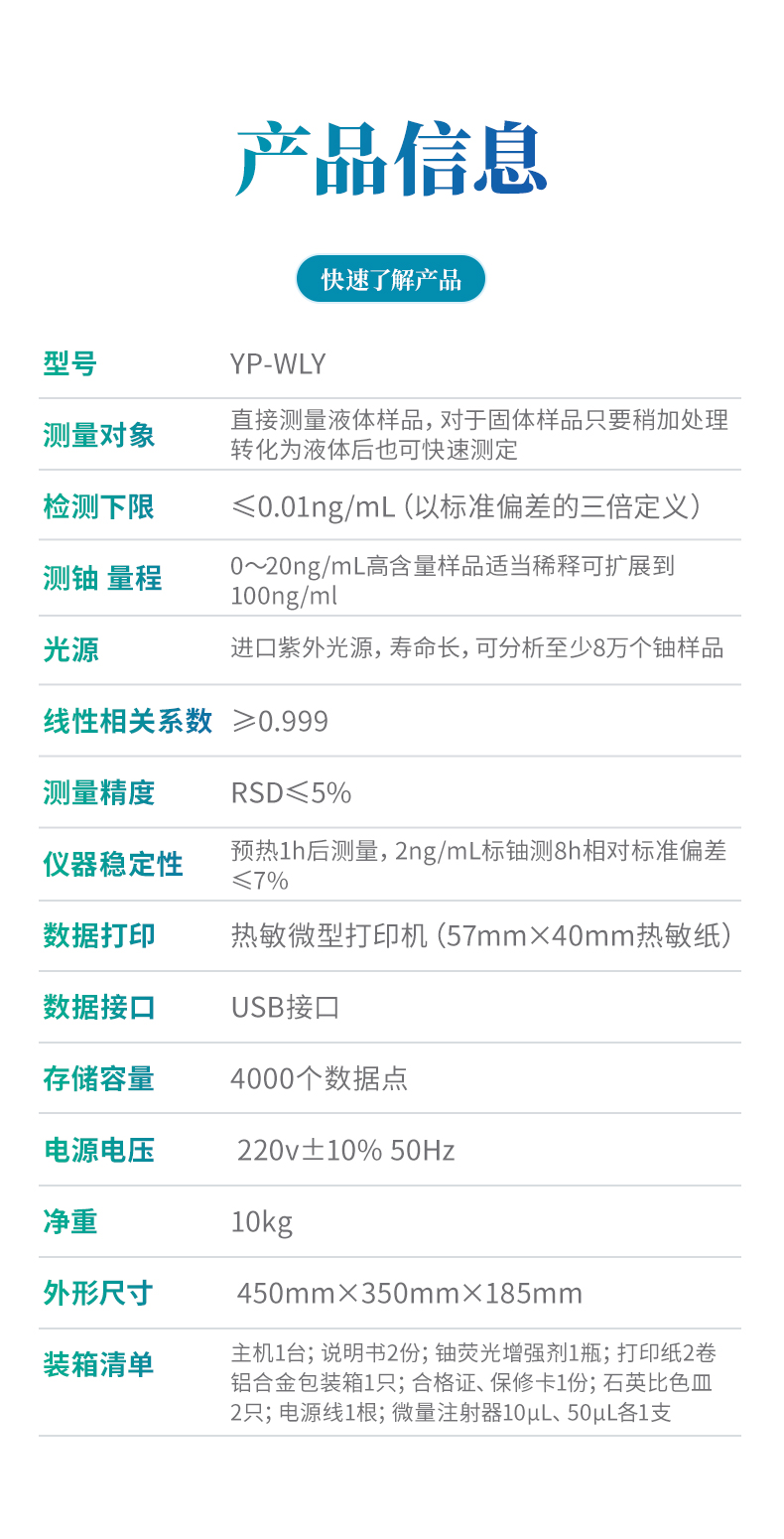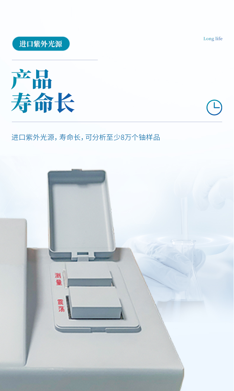 進(jìn)口紫外光源,壽命長(zhǎng),可分析至少8萬(wàn)個(gè)鈾樣品