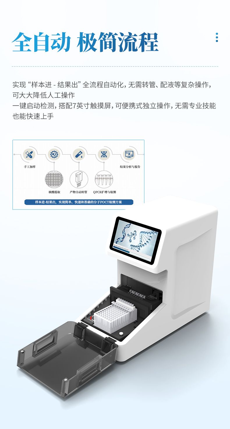 樣本進(jìn)、結(jié)果出,實(shí)現(xiàn)簡(jiǎn)單、快速和準(zhǔn)確的分子POCT檢測(cè)方案