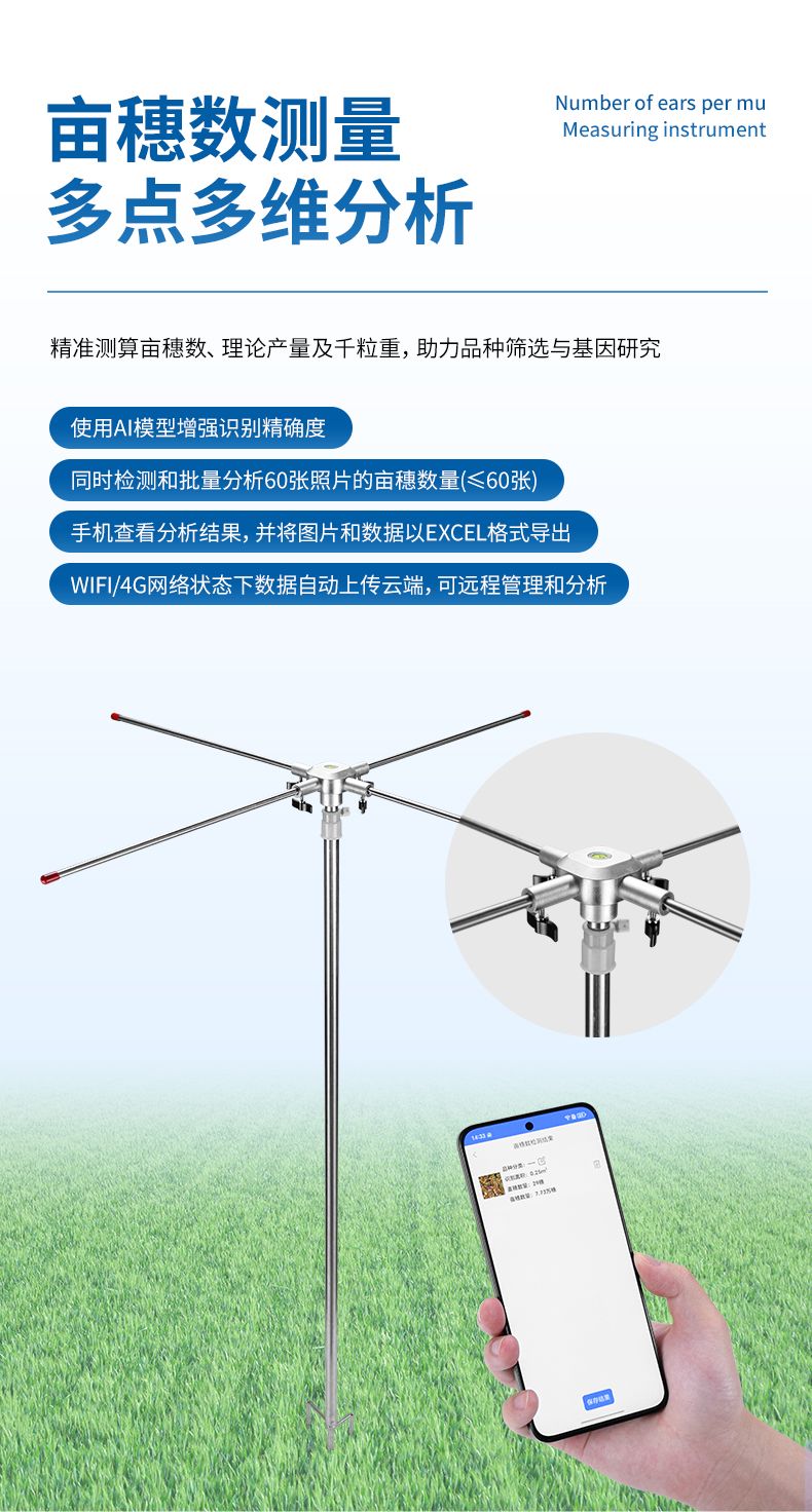 小麥畝穗數(shù)測(cè)量主要用于快速、準(zhǔn)確地測(cè)量單位面積內(nèi)的小麥穗數(shù)。該設(shè)備結(jié)合圖像識(shí)別技術(shù)、人工智能算法與高分辨率攝像系統(tǒng),通過(guò)對(duì)實(shí)地拍攝的小麥圖像進(jìn)行分析,自動(dòng)識(shí)別并計(jì)數(shù)麥穗數(shù)量,極大地提高了測(cè)量效率與準(zhǔn)確性。
