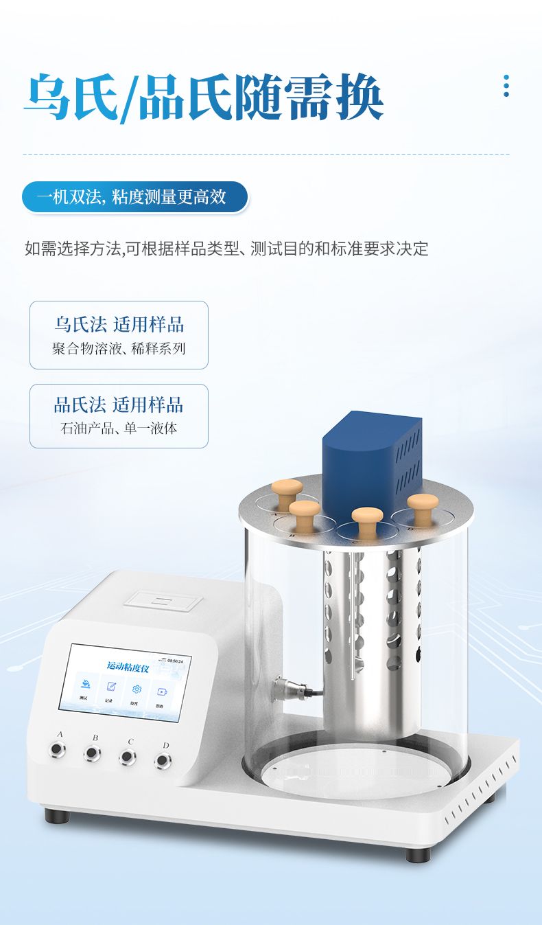本產(chǎn)品石油產(chǎn)品運(yùn)動粘度自動測定儀是依據(jù)國家標(biāo)準(zhǔn)《GB265-88石油產(chǎn)品運(yùn)動粘度測定法》設(shè)計制造的專用測試儀器,適用于測定液體石油產(chǎn)品的運(yùn)動粘度。本儀器具有計時試樣運(yùn)動時間,自動計算運(yùn)動粘度的最終結(jié)果。本方法適用于測定液體石油產(chǎn)品(指牛頓液體)的運(yùn)動粘度,其單位為m2/s,通常在實際中使用為mm2/s。動力粘度可由測得的運(yùn)動粘度乘以液體的密度求得。本方法是在某一恒定的溫度下,測定一定體積的液體在重力下流過一個標(biāo)定好的玻璃毛細(xì)管粘度計(品氏、烏氏)的時間,粘度計的毛細(xì)管常數(shù)與流動時間的乘積,即為該溫度下測定液體的運(yùn)動粘度。該溫度下運(yùn)動粘度和同溫度下液體的密度之積為該溫度下的動力粘度。