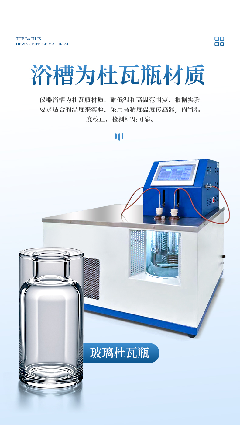 3、本儀器的冷浴是采用雙層真空保溫瓶,能很好的透明觀察試樣,保溫性能良好。