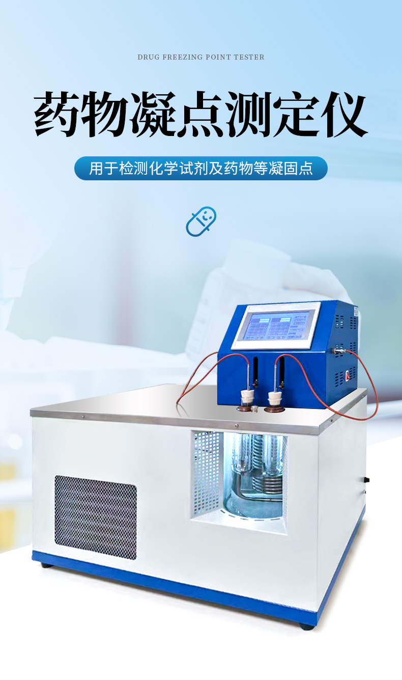 本儀器按《中華人民共和國藥典》2020年版四部 通則 0613凝點(diǎn)測定法設(shè)計制造,測定藥物由液體凝結(jié)為固體時候,在短時間內(nèi)停留不變的最高溫度。某些藥品具有一定的凝點(diǎn)、純度變更,凝點(diǎn)亦隨之改變。測定凝點(diǎn)可以區(qū)別或檢查藥品的純雜程度。