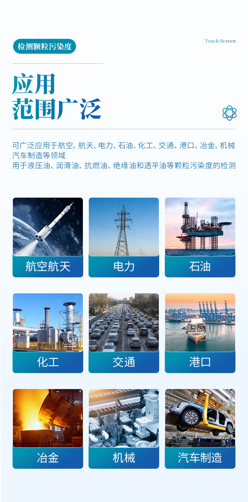 YP-YT10油液顆粒計數(shù)器依據(jù)GB/T 18854-2002(ISO11171-1999)等標(biāo)準(zhǔn)。采用光阻(遮光)法計數(shù)原理研制,完全符合相應(yīng)國軍標(biāo)、國家標(biāo)準(zhǔn)及國際標(biāo)準(zhǔn)。可提供快速、準(zhǔn)確、可靠、可重復(fù)的檢測結(jié)果及完整的污染監(jiān)測分析報告,適用于液壓油、潤滑油、抗燃油、絕緣油和透平油等顆粒污染度的檢測??蓮V泛應(yīng)用于航空、航天、電力、石油、化工、交通、港口、冶金、機械、汽車制造等領(lǐng)域。