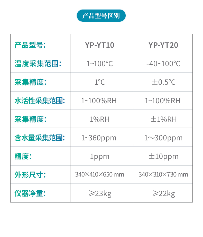 l水活性(有償選配):采集范圍:1~100%RH;采集精度:1%RH