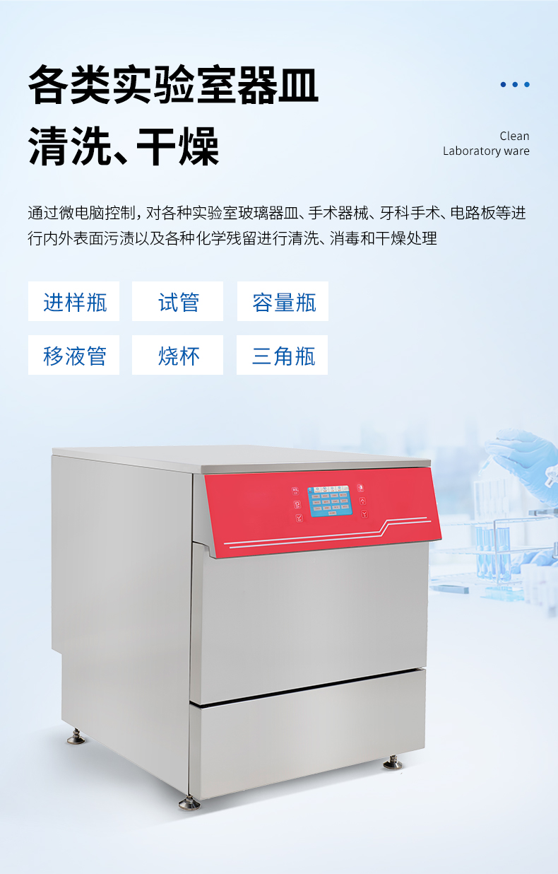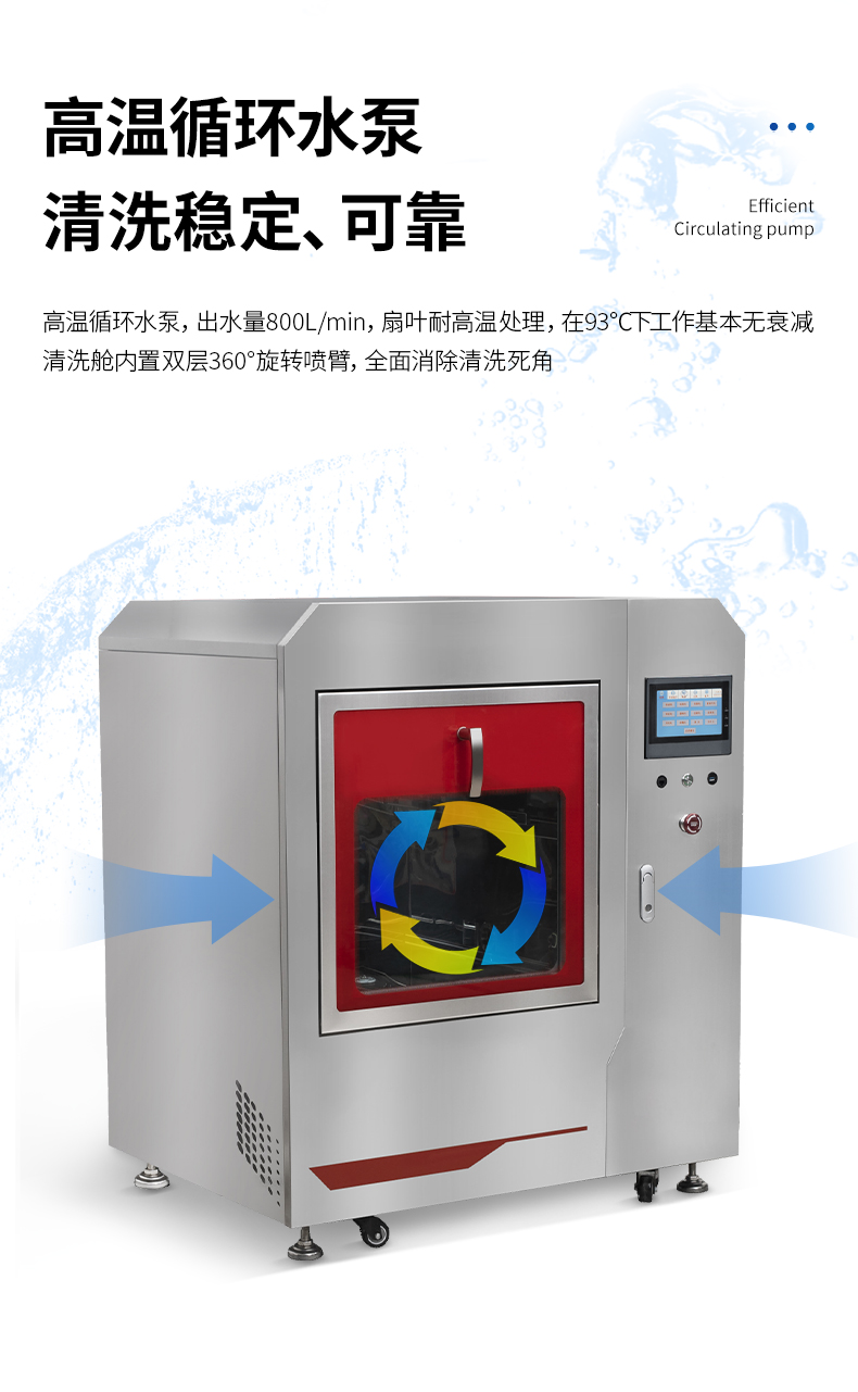 1.1全自動(dòng)清洗設(shè)備,利用高溫、高壓水持續(xù)噴淋器皿內(nèi)外表面,結(jié)合清洗液的作用,清潔器皿內(nèi)外污物,進(jìn)水、清洗、排水、烘干全自動(dòng)完成,無(wú)需人工干預(yù);