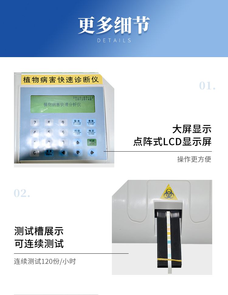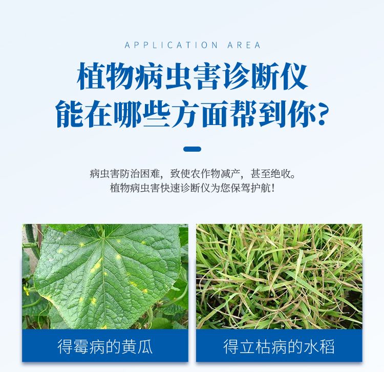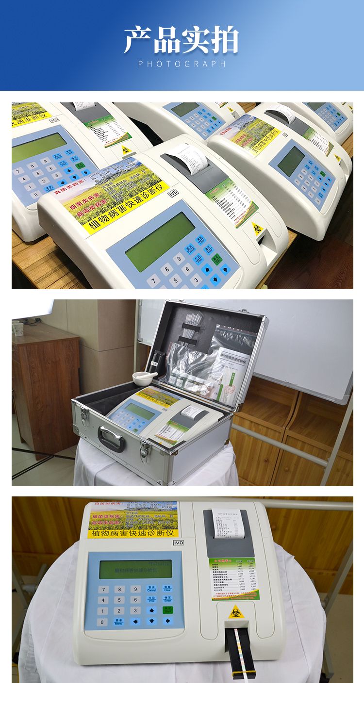 植物病害的檢測(cè)是一種復(fù)雜的化學(xué)和物理過程,從實(shí)驗(yàn)室走入實(shí)際應(yīng)用一直是人們追求的目標(biāo),該儀器能夠快速分析確定各種農(nóng)作物病害的種類。為如何防治病害及用藥提供了科學(xué)理論依據(jù),為農(nóng)場(chǎng)主和農(nóng)戶帶來了極大的便利。